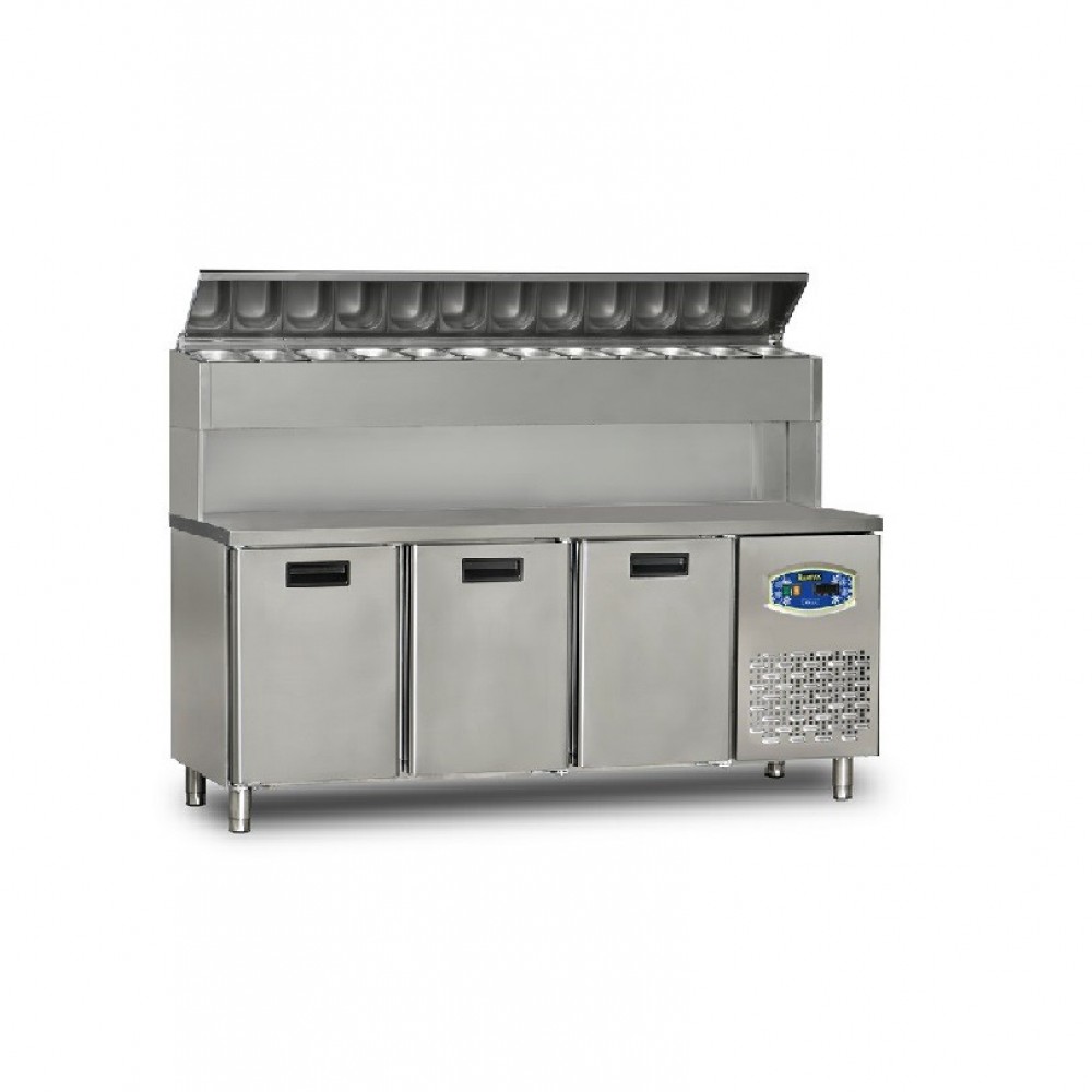 Table de préparation sandwich/ pizzas saladette haute 3 portes 450L - DAMPAK - 22TBF3S-PY70